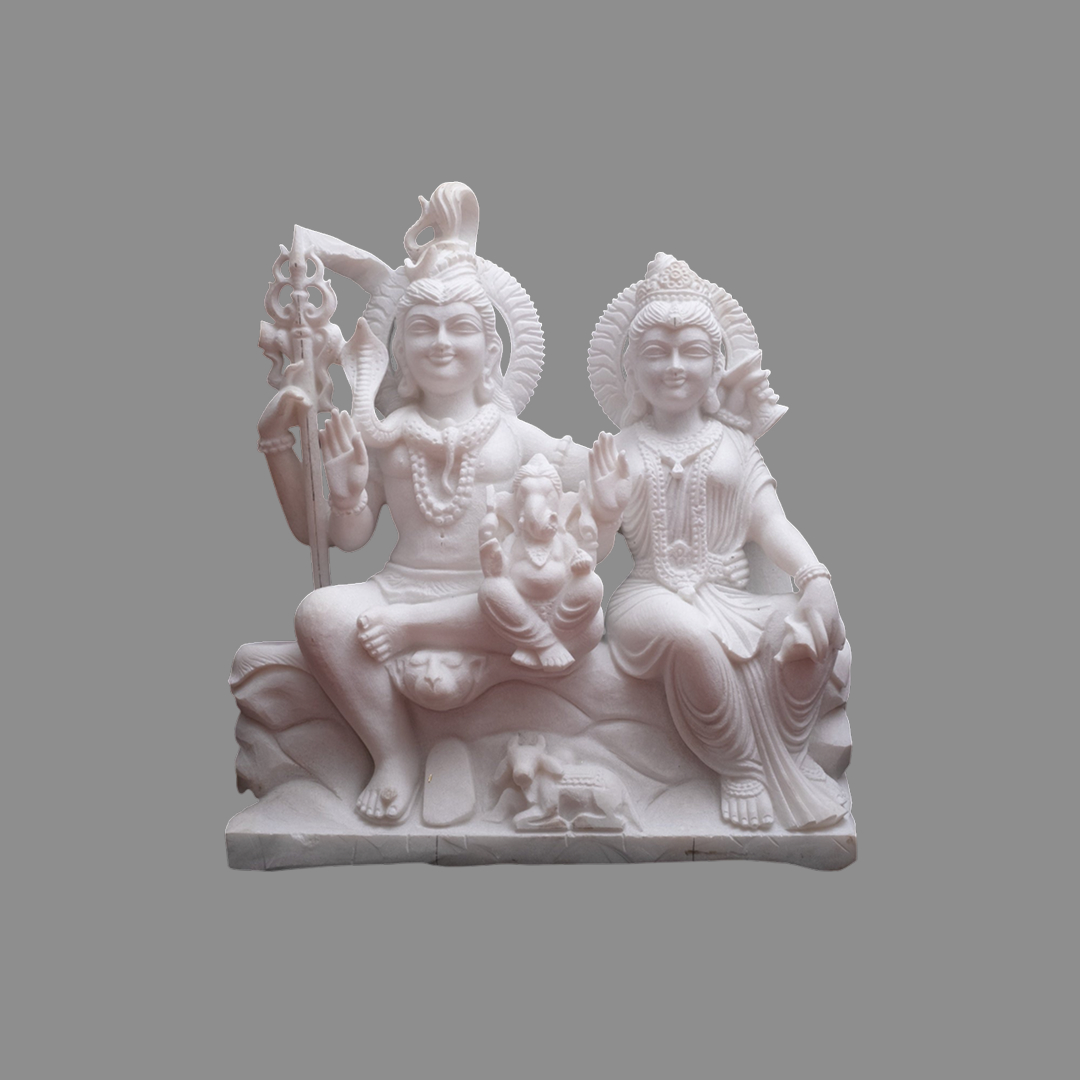 This exquisite Shiv Parivar Marble Statue for Temple, handcrafted from pure Makrana white marble, beautifully depicts Lord Shiva with Goddess Parvati, Lord Ganesha, and Nandi at their feet. Perfect as a home temple idol or spiritual décor, this sacred Shiv Parivar murti radiates divine blessings, serenity, and devotion. Ideal for pooja rooms, mandirs, and sacred spaces, this finely crafted marble Shiva family statue brings elegance and spiritual energy to any setting.