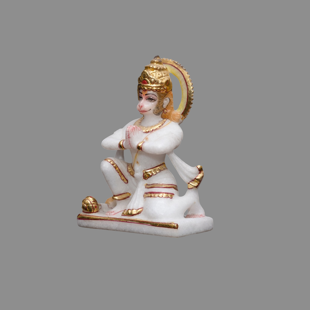 Bring divine energy into your home temple with this Lord Hanuman marble statue, meticulously carved from premium Makrana white marble from Rajasthan. Revered for his devotion to Lord Rama, immense strength, and self-discipline, this Hanuman murti is perfect for pooja rooms, home worship, or spiritual decor. Ideal as a gift for weddings, housewarming, or religious occasions, this handcrafted marble Hanuman idol brings positivity, protection, and blessings to your home.