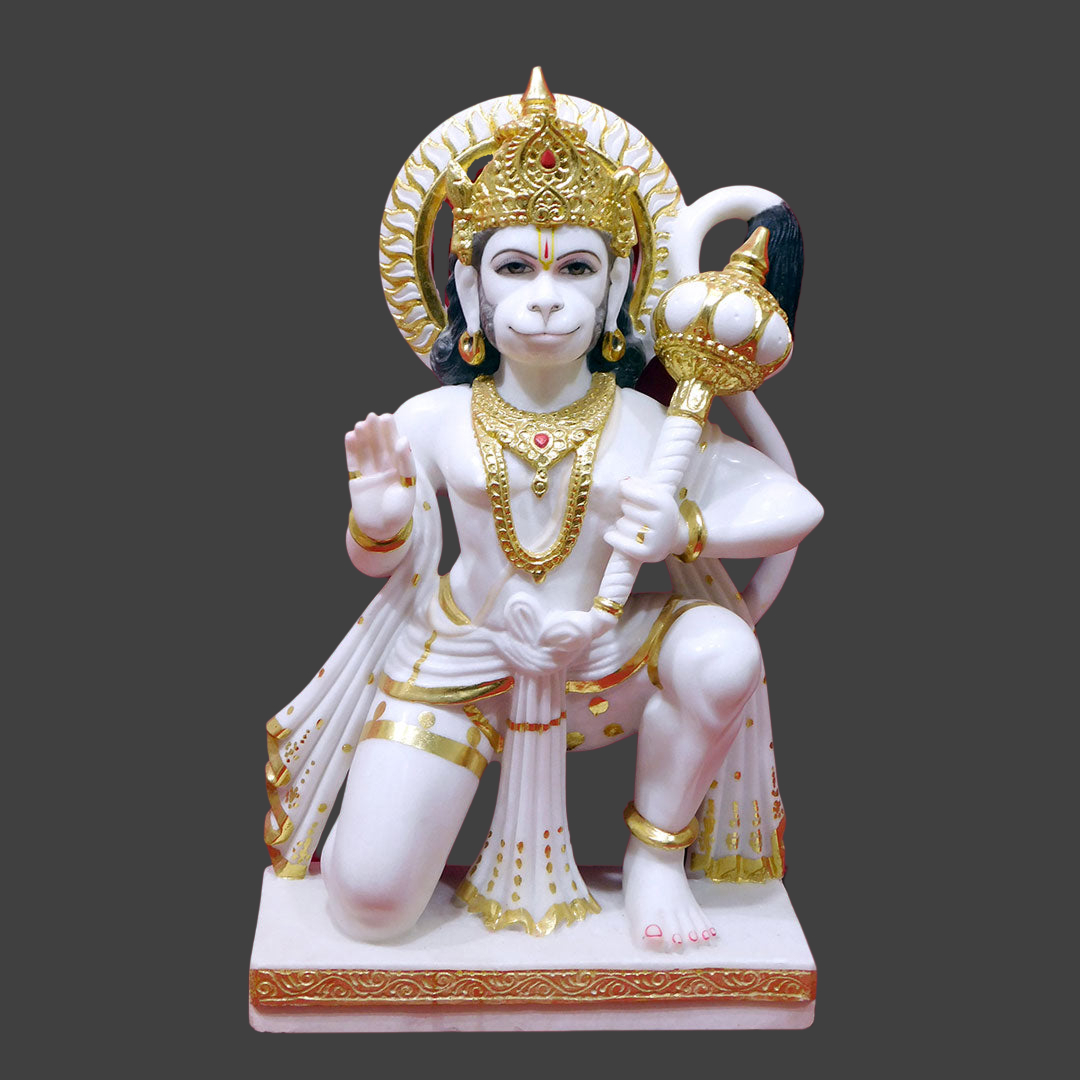 This divine Sitting Aashirwad Hanuman Ji Marble Statue, handcrafted from premium Vietnam marble, beautifully captures the essence of strength, devotion, and protection. With a smooth finish and exquisite golden detailing, this sacred Hanuman Ji idol depicts the mighty Sankatmochan holding his gada, radiating power and divine energy. Perfect for temples, pooja rooms, and home décor, this elegant Vietnam marble Hanuman murti brings blessings, courage, and positivity to any sacred space.